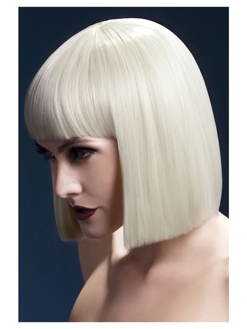 Choose your style from a variety of colours for this fever lola wig. It is a blunt cub bob wig with a fringe measuring 30cm/12inches in length. The wig is manufactured with a fully adjustable, high quality wig cap for breathability and a lighter feel and features a faux skin crown.